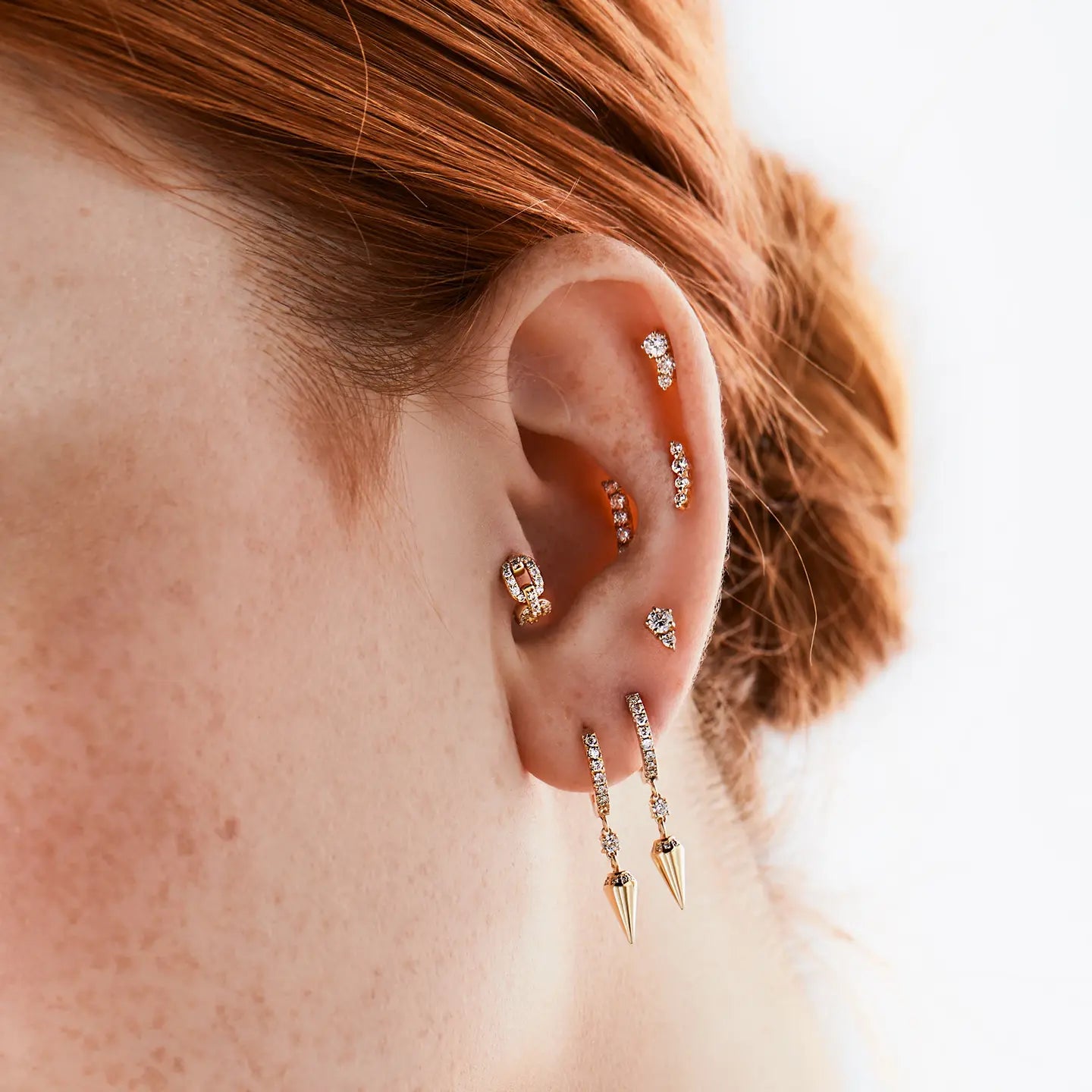 שילוב מושלם של זהב ויהלומים בעיצוב מדויק, המוסיף טאץ' יוקרתי ועדין לכל אוזן. כל פרט מחושב, כל זווית מוקפדת, כדי ליצור הרמוניה מושלמת שמשדרגת את הסטייל שלך בלי מאמץ.